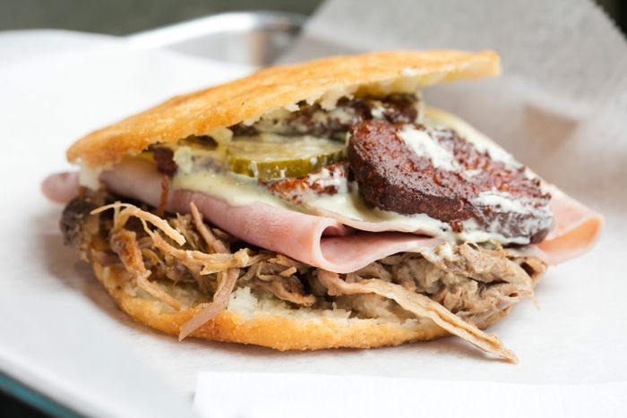 “El Verdadero Sabor de la Comida Venezolano,” or “The True Taste of Venezuelan Cuisine,” reads the awning of this Venezuelan snack specialist. The snack in question? The namesake patacón, a hefty sandwich made from twice-fried disks of plantain that act as a bun. Fillings range from the traditional, like shredded beef, roast pork, and chorizo, to originals like the Cubano, which combines pulled pork, ham, cheese, and pickles. There’s even a bacon-cheeseburger option. Other snacks include first-rate arepas and cachapas, sweet corn cakes enfolding a variety of fillings. The heftiest — La Gorda — is packed with mozzarella and bacon and topped with a lashing of crema and a blizzard of Parmesan.