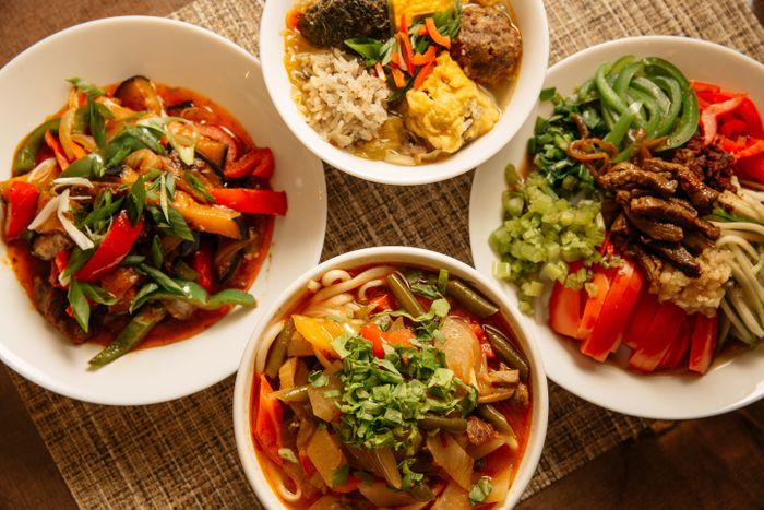 When husband and wife Damirzhan Azimov and Gulshat Azimova opened Lagman House in the spring of 2018, they became the city’s only proprietors of a Dungan restaurant. The western-Chinese Muslim cuisine is rich and bright, sharing touchstones with the dishes of Central Asia (where many Dungans resettled in the late 19th century), but also decidedly its own. A bowl of lagman soup (thon lamian) is beefy and brimming with red pepper and green beans. The tangle of noodles inside pull delightfully under the teeth and are slightly irregular in thickness, a sure indicator that they were made by hand. Together with the Dungan-style salad — a soy-sauce-dressed jumble of shredded carrots, scallion, and red pepper that can be stirred into the soup as a condiment — they make a satisfying meal for one. But best to arrive with friends and sample as many dishes as possible. The justai hezi (thin, fried pancakes filled with meat and softened chives) and the Napa-cabbage gravy, a saucy stew of pickled cabbage and beef that is spooned over rice, are two standouts among many.