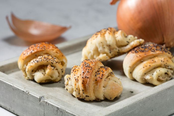 This modern kosher bake shop (with one location in Borough Park and two in Midwood) makes a half-dozen different flavors from the standard chocolate and cinnamon to the less common vanilla and blueberry. But the standout takes an entirely different approach. A pillowy spiral of yeast dough is swirled with softened sautéed onions and sprinkled with poppy seeds instead of the expected cinnamon-sugar. Rugelach have traditionally always been sweet, but Kaff’s makes a convincing case for their savory side.