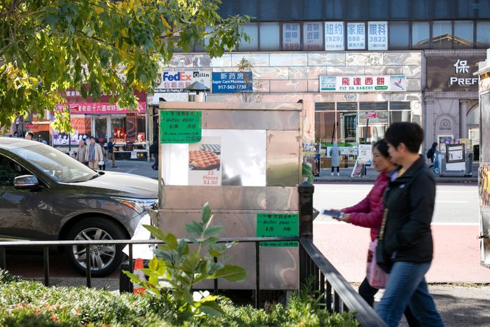 On most afternoons you’ll find affable Malaysian vendor Chee Ching stationed inside his tiny cart cooking batch after batch of Hong Kong–style bubble waffles. His cart is the only one in Queens selling the tiny, slightly crunchy vanilla-scented cakes. Before Instagram turned them into a vehicle for ice cream, the treats known in Cantonese as gai daan zai, or “little eggs,” were a legendary Manhattan Chinatown street food. In fact, Ching and his wife, Xue, who hails from Hong Kong and taught him the recipe, used to have a stand on Mulberry and Mott. “I’m just a worker, I work for her, my wife is the boss,” says Ching with a smile. Half the fun is watching him make them; the other half is popping them into your mouth. They come 15 to an order for $1.50. You should probably spring for two. (Monday to Saturday 10 a.m. to 7 p.m.; Sunday to 6 p.m.)