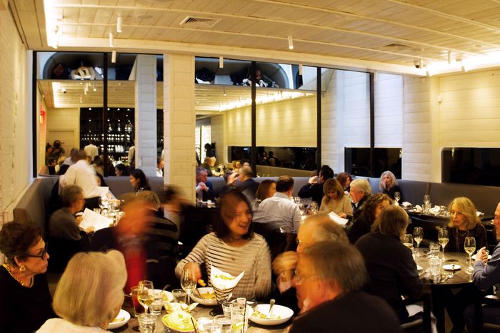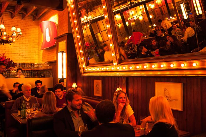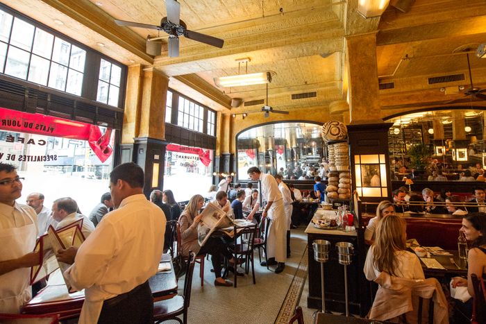 Like some of the city’s other trendy brasseries, Andrew Carmellini’s version offers plates of fresh oysters, newfangled versions of duck au poivre, and twirls of skinny golden frites in soft paper cones. Unlike the others, there’s also a Balthazar-like boulangerie up front, where you can purchase fresh-baked croissants and pointy baguettes and ogle trays of overpriced pastries displayed under glass. The tall, airy room on Lafayette Street features Continental-style picture windows and spacious coffee-colored banquettes, and it’s easily the prettiest, most workable space that Carmellini and his team have occupied since they began hatching restaurant ideas years ago.
