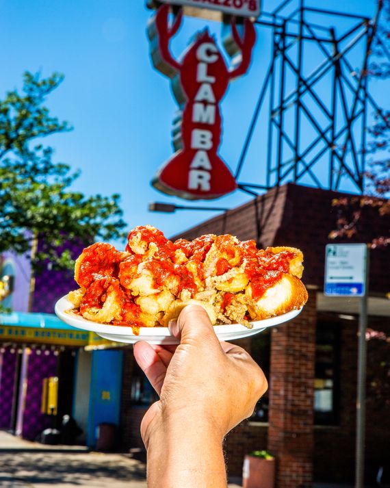 Randazzo’s speaks Italian with a Brooklyn accent, so calamari is “galamah,” as the servers’ T-shirts proclaim. And though some may say the special sauce at this venerable clam bar is, indeed, its special sauce — a high-octane tomato gravy that comes in hot or medium and vastly improves everything it comes in contact with, galamah included — we’d argue that a meal here derives as much flavor from the proximity of Sheepshead Bay across Emmons Avenue. You can catch a glimpse of the waterway from the picnic tables that flank the building, but for the full effect, take a stroll down Pier 10 or a walk across the Ocean Avenue footbridge to Manhattan Beach to work off some calories and observe the flocks of southern Brooklyn geese, swans, ducks, and pigeons stake their respective aquatic turf.
