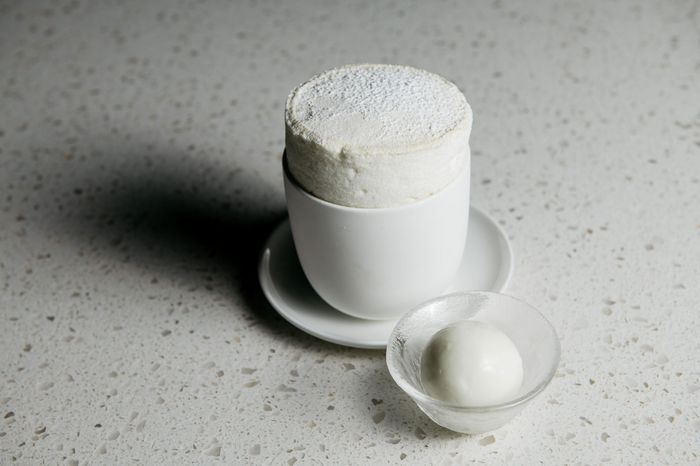 It’s difficult to know how the old Gotham diehards are taking these radical little changes, although on my visits, the room was full with the usual mixture of business suits, familiar faces from the neighborhood, and slightly dazed out-of-town tourists. There are still plenty of things for an Old Guard to take comfort in, however, including a bowl of squid-ink “spaghetti neri” (folded with a rich and generous octopus ragù) and the porcelet, which is one of the better new pork dishes in town. There’s also a recognizable and impressive roster of classic desserts, by Gotham’s longtime pastry chef Ron Paprocki, which includes blocks of caramelized pain perdu bolstered with brown-butter ice cream; a beautiful, slim raspberry vacherin decked with flower petals and tiny caps of meringue; and a pear soufflé that, in texture, taste, and appearance, seems uncannily like something the old master would have been pleased to serve back in the day, when the restaurant first opened its doors in the spring of 1984.
