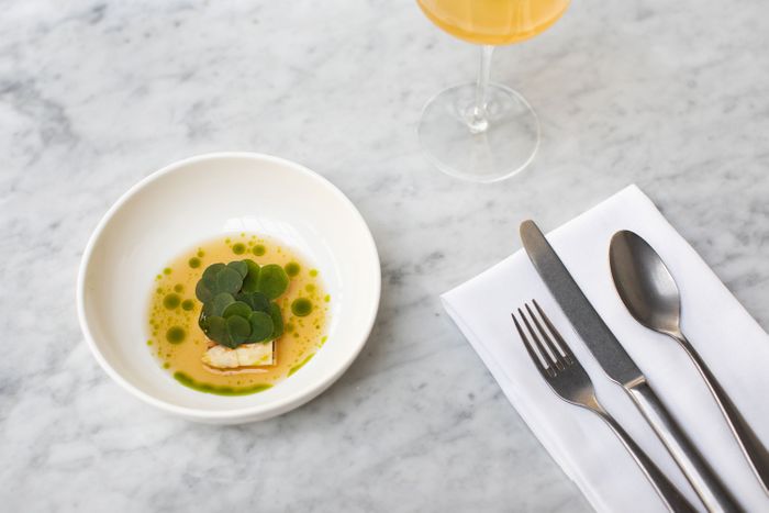This smallish (600 square feet), slightly out of the way East Village tasting room hasn’t received much attention among members of the nattering classes, but don’t let that fool you. The chefs, Nahid Ahmed and Arjuna Bull, are veterans of the city’s high-end pop-up scene, not to mention some of the most storied kitchens in the world (Lespinasse, The Fat Duck, El Bulli) and bite for bite, their modestly priced, ($68) Indian-accented “global” menus (one for carnivores, one for vegetarians) offer a whole variety of polished and unexpected treats. To experience the full rainbow of flavors and technique, we recommend forking over an extra 52 bucks for the “chef’s pass” tasting experience which, on my visit, included frizzled slices of razor clams topped with amaranth leaves, nodules of veal touched with a lingonberry sauce leavened with gochujang, and one of the delicately crunchy octopus tentacles rolled in cornstarch and flash fried with a touch of rice flour.