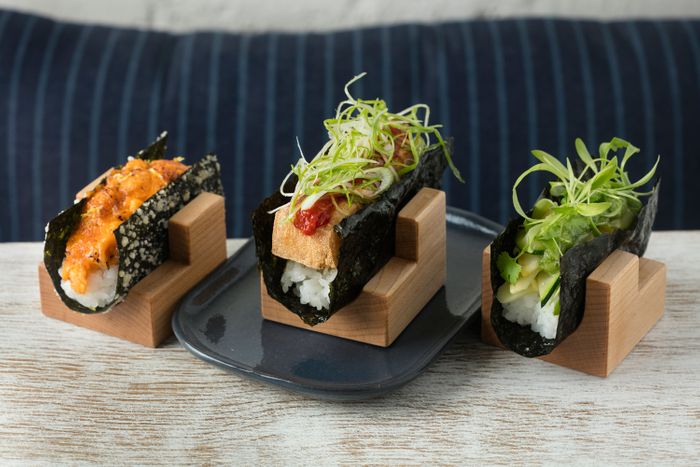 There have been many attempts, over the years, to find a way out of the pricey, stifling, increasingly elitist sushi omakase formula, and at this stylishly pleasing, refreshingly economical West Village homage to the pleasures of the maki hand roll, Lisa Limb and her chef partners, Jihan Lee and Taka Sakeada, may have finally done it. Unlike a lot of effete tasting rooms around town, Masa veterans Lee and Sakeado charge 28 bucks for their omakase “chef’s set,” which might include a seasonal vegan option made with gently sautéed nickels of squash flavored with scallion and ginger, or warm mounds of spicy crab loaded into a square of nori seaweed speckled with toasted rice. There’s also the occasional professional helping of non-hand-roll sashimi, for old times’ sake, and if you wish to go hog wild in the bromakase tradition there are five different grades of market-price uni to choose from, and you can top your maki roll with caviar, or drifts of pricey winter truffles.