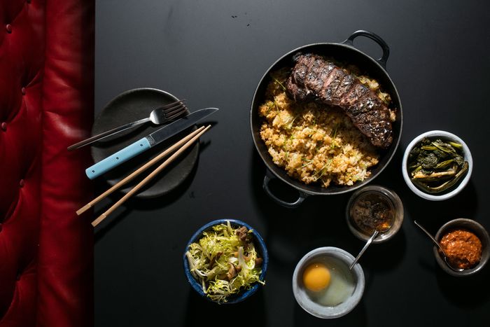 Hardcore East Village Momofuku veterans will probably experience a few twinges of sadness and regret as they make their way up through the network of escalators and deserted boutiques to this new Changian outpost in the Hudson Yards, but Eunjo Park’s punchy, satisfying, homestyle Korean cooking makes the grim, soul-crushing journey more than worthwhile. The dishes we can’t get out of our head are the rib-sticking stews (oxtail, the excellent stinky soybean with pork belly) and the large format steak and chicken dinners (particularly the chicken, served over a mass of sweet glass noodles), but save room for the desserts like the Korean version of shaved ice kakigori, called bingsoo, which was poured with blueberry syrup the last time we enjoyed it, and dappled with croutons made with sweet cubes of pancake batter.