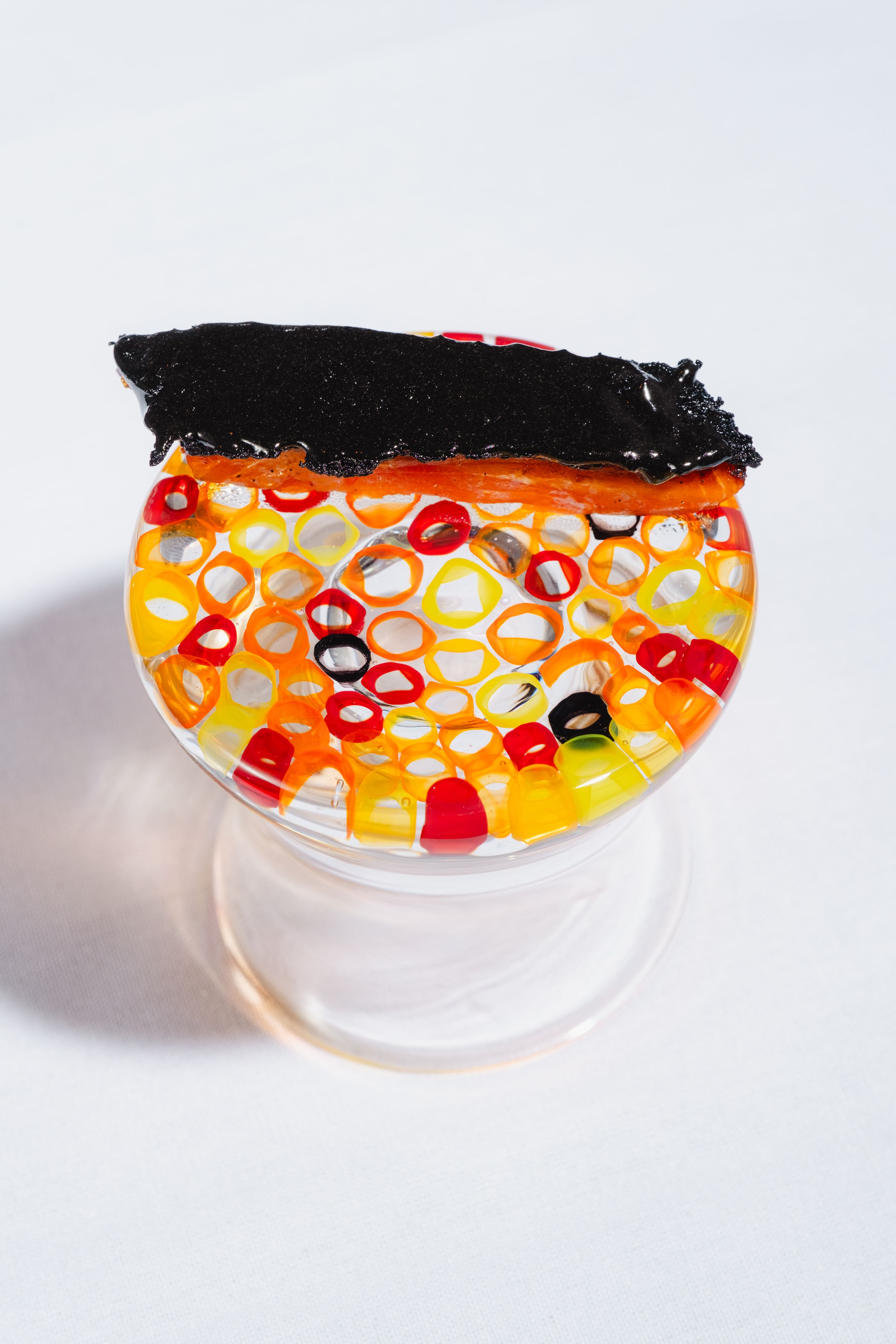 Alinea is known for a certain vision of maximalist modernist cooking. The collaboration keeps the mondo aesthetic going. The dinner unfolds over five locations and offers nearly 20 courses. It has many layers, no small amount of theatricality, and a soundtrack that includes both the Kronos Quartet’s “Requiem for a Dream” and the Beastie Boys’ “No Sleep Till Brooklyn.” Jaywalking is involved. So are quatrains, black lights, truffles, caviar, and charred Arctic char. There are four seatings each night, from 5:30 to 9:15, with between 20 and 24 guests per turn. Almost the entire Alinea staff has relocated for the month, many doubled up in Airbnbs around the city.